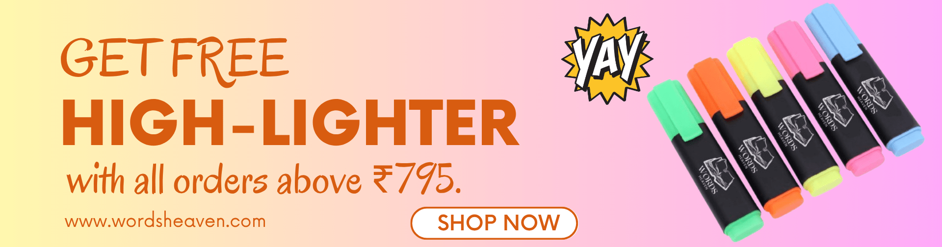 You Can get Words Heaven Highlighter Free with your order if you order above ₹955.